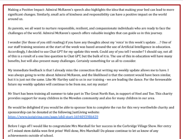 Head's Weekly News - Making a Postive Impact